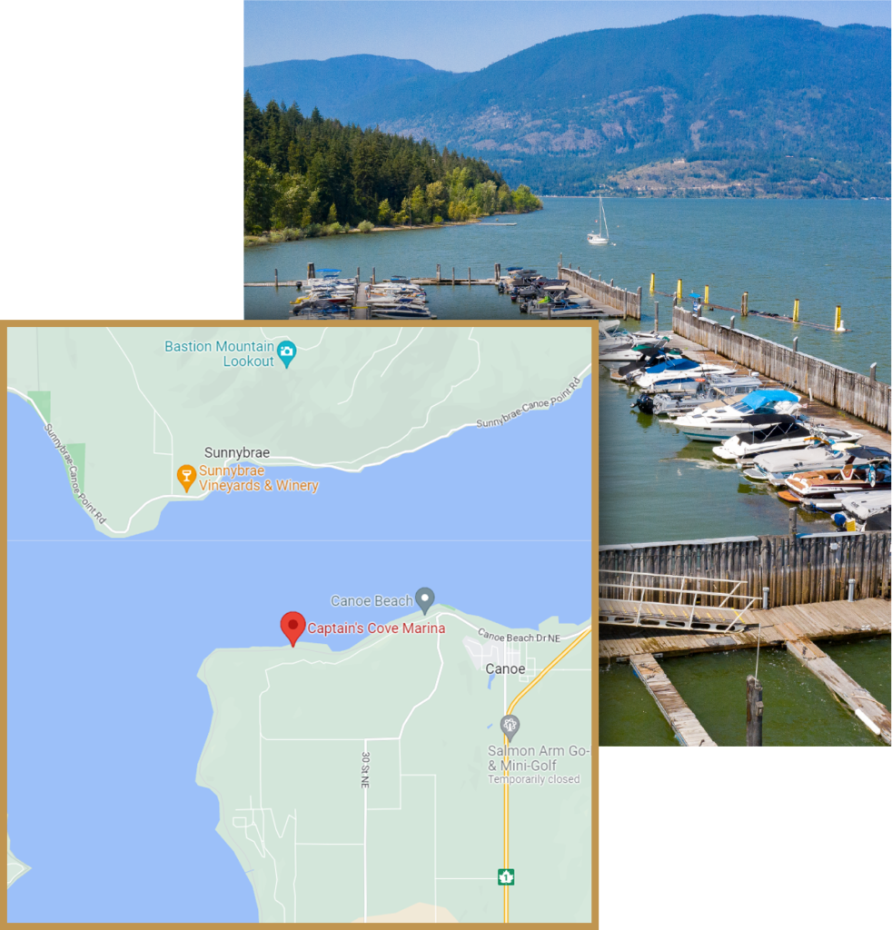 Located on the beautiful Shuswap, Captains Cove is nestled between Salmon Arm Warf and Canoe beach
